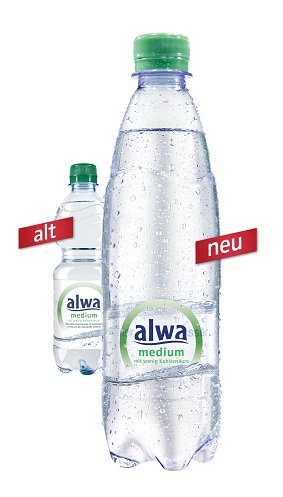 Als Innovation führt alwa bei den 0,5l PET-Einwegflaschen einen 12er-Karton ein. Die Verbraucherakzeptanz wird vorerst exklusiv in den Real-Märkten getestet. Statt zwei der bisher üblichen Sixpacks zu jonglieren, ist der neue 12er-Karton für den Verbraucher einfacher zu transportieren. Der Karton ist mit zwei vorgestanzten seitlichen Eingriffen versehen und so stabil, dass er sogar mit nur einer Hand getragen werden kann. An seinem Deckel befindet sich eine Lasche zum Aufreißen, sodass die Flaschen leicht entnommen werden können. Im Handel besteht die Möglichkeit, den stapelbaren Karton im Mehrwegbereich zu platzieren. Da die Platzierungsmöglichkeiten in den Einweg-Regalen immer schwieriger werden, ist dies ein großer Vorteil. (verfügbar ab März bei Real)